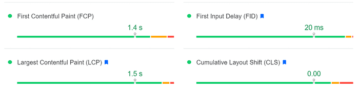 Det som har ändrats är att Google introducerat Core Web Vitals vilket är ett antal mätpunkter som de definierat. Hur väl din site presterar på dessa mätpunkter är numera en faktor i hur bra du rankar. Det finns fler mätpunkter än de tre nedan, men det är bara betyget på dessa tre som Google väger in i din ranking. Andra mätpunkter som FCP (First Contentful Paint) är främst intressanta att jobba med för att de kan hjälpa dig förbättra nedanstående mätpunkter.