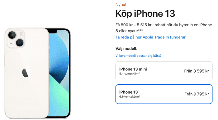 En iPhone 13 vs. iPhone 13 Mini: Apple har en variant av sin klassiska iPhone som har mindre skärmstorlek och är en dryg tusenlapp billigare än standardvarianten. Det kan kanske få vissa konsumenter att välja en iPhone i stället för en Samsung med Android.