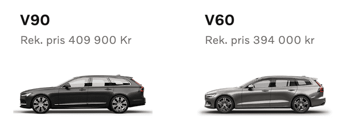 Volvo V60 vs. Volvo V90: Två kombibilar med samma typ av funktion, men den senare är lite mer premium och har fler features, vilket också avspeglas i priset.